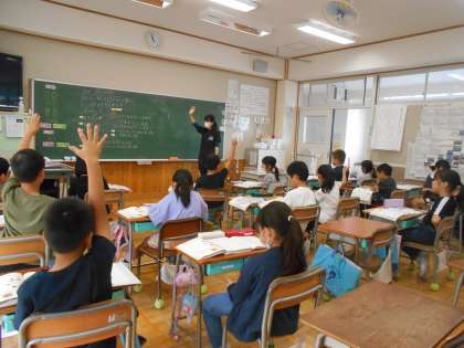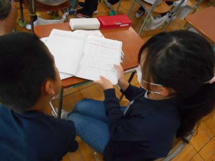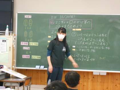 10月20日(金)2年生 算数 公開日 2023/10/20 更新日 2023/10/20 できごと 「かけ算」の学習がいい調子で始まっています。今日は「かけ算九九」との出会いの時間です。1つ分(1皿分)の数(お寿司)が2このときのかけ算の答えを1皿からはじまって9皿分まで考えていました。「わたしはこうしてかんがえたよ」と友達と交流していました。考え方についていろいろな説明が聞かれました。みんな一生懸命説明していました。