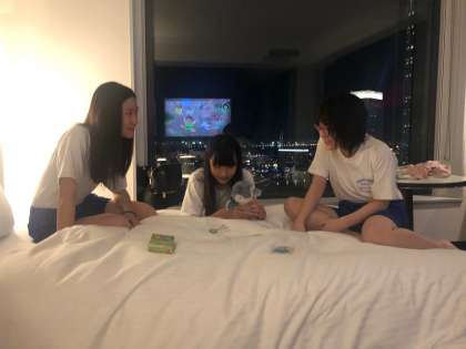 10月25日(水)6年生 修学旅行 ホテルにてくつろぎタイム1 公開日 2023/10/26 更新日 2023/10/26 できごと 部屋の様子です。カードゲームをしたり、振り返りをしたり、お金の計算をしたり、思い思いに友達との時間を過ごしています。 20時から室長会議が始まりました。