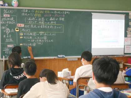 10月30日(月)6年生 社会科 公開日 2023/10/30 更新日 2023/10/30 できごと 江戸幕府になぜ鎖国が行われたのか?を学習しています。ちょうど教室では、自分の考えをノートに書いていました。児童の様子を見てみると、少し難しそうでしたが、自分の考えをしっかり書いていました。難しいなあと思っても、友達の意見を聞いてみると、「なるほど、そういう考えもあるのか!」「たしかに、・・・だったもんね!」と友達の考えや「これまで」の学習内容とつなげてみると、ピン!ときます。