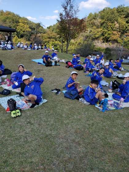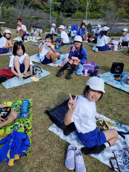 観音山ケルナー広場でお弁当タイムです。みんな美味しそうに!笑顔が素敵!