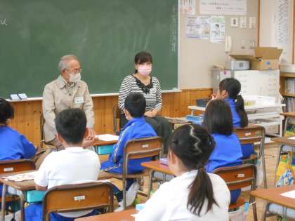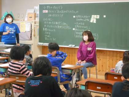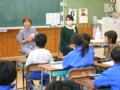 11月6日(月)3年生 総合 小野のたからびと 公開日 2023/11/06 更新日 2023/11/06 できごと 3年生の総合的な学習の時間では、「小野のたから」について進めています。今朝の業前の時間でお世話になったおのハンモックの読み語りの方々をゲストティーチャーとしてお迎えし、1時間目は各クラスでインタビューに答えていただきました。小野の子供たちに楽しくて幸せな時間を過ごしてもらいたい!という願いをもって活動してくださっていることなどを知り、感謝しました。