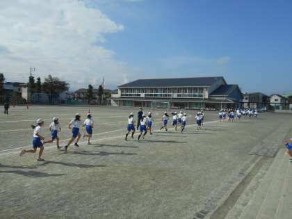11月9日(木)5年生 合同体育(持久走) 公開日 2023/11/09 更新日 2023/11/09 できごと 今日も秋晴れのすがすがしい日です。校庭では5年生が持久走を頑張っていました。一人一人が自分の目標の達成に向けて頑張っています。とても感心なのは、友達の応援です。「がんばれ!がんばれ!」の一生懸命な応援が学校中に響いています。