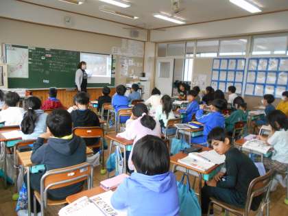 「お店ではたらく人のしごと」では、人や環境のことを考えたお店の工夫を学習しています。ちょうど教室では、スーパーのリサイクルコーナーの話からいろいろな発言が出されました。「うちでは牛乳パックをあらってスーパーにもってくよ」「海のごみは魚が食べちゃうからだめなんだよ」環境のこともしっかり考えている3年生に感心しました。そして各家庭でそのような大切な取組をしていたり、家族で話題にしていたりすることがよく伝わりました。このように学校での学習と生活はつながっていますね。