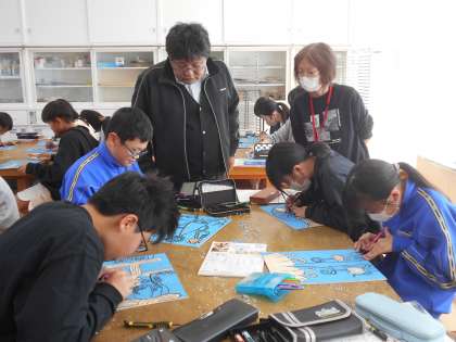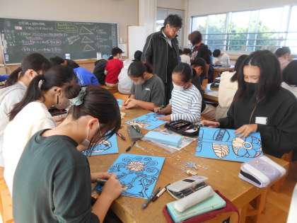 11月9日(木)6年生図工(おのハンモック協力) 公開日 2023/11/09 更新日 2023/11/09 できごと 「不思議な植物の版画」に取り組んでいます。彫刻刀を使って真剣に集中して取り組んでいました。デザイン、彫り方、皆一人一人個性豊かで魅力的な作品ばかりです。先生(中学校兼務)やおのハンモックのボランティアさんからも「いいね!」「この彫り方が素晴らしい!」などと誉められている児童が多くいました。嬉しそうでした。丁寧にアドバイスをもらっていました。