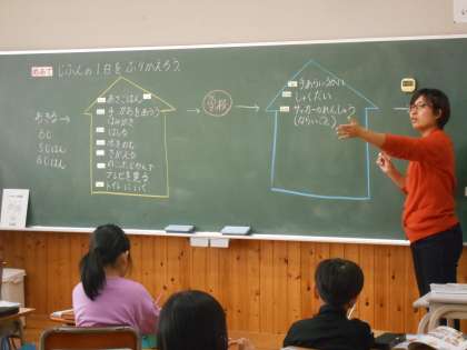 「じぶんで できるよ」に入りました。今日は、「じぶんの いちにちを みつめよう」です。「ここでは」自分自身の生活を見つめ直すことで、家族の一員として自分ができそうだな、やってみたいなと思うことに挑戦します。そして、この一年間で自分ができるようになったことに自信をもったり、家族の思いに気付いたりして、どんどん大きく成長してほしいと願います。