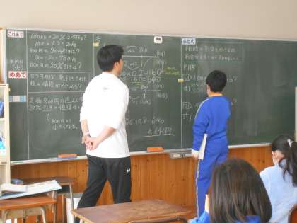 少人数授業の様子です。「割合」の学習では、割引きされた後の値段の求め方を考えていました。日常生活でもよくあることで、その状況もよくイメージできることでしょう。これから生活していくうえでとても役に立つ学習ですね。