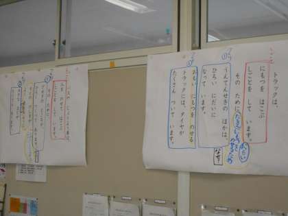 11月15日(水)1年生 国語 公開日 2023/11/15 更新日 2023/11/15 できごと 「じどう車くらべ」3組(写真上中)では、クレーン車のこと、2組(写真下)では、はしご車のことを読んでいました。「ここでは」説明文を上手に読むことができるようになります。それぞれの車の「しごと」、そのためにどんな「つくり」かを読み取っています。「このあと」誰かに何かを説明することがどんどん出てきます。1年生でしっかり基本的なことを身に付けています。