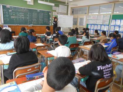 「分数」の学習の総まとめをしています。総まとめなので、どんどんいろいろな問題にチャレンジします。今日のめあては「分数のしくみを正かくに言葉で表そう・分数のしくみを正かくに使ってもんだいをとこう」です。時にはこのめあてを全体で確認しながら、確実に力がつくように頑張っています。