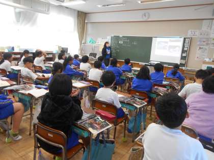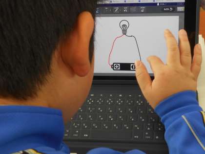 新しい単元「電気の通り道」の学習に入りました。キラキラと輝くきれいなイルミネーションの写真を見て、私たちの生活に欠かせない明かりはどうしたらつくのかな?自分の生活経験と合わせて考えていました。電気の基地から電線が引かれている!太陽の光から電気がうまれる!色々な意見が出され、3年生にもなると、日々の生活の中で学んでいること(家族で話しているのでしょう)があるなと感じました。その後、乾電池と豆電球をどうつなぐと明かりが付くのか予想しました。