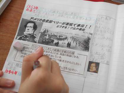 11月21日(火)6年生 社会科 公開日 2023/11/21 更新日 2023/11/21 できごと 昨日考えた課題の達成に向けて、学習が始まりました。今日は、ペリーの来航が日本に与えた影響について学習しました。開国か?鎖国か?予想しました。そして感心したのは、その理由もしっかり考えることができているからです。歴史の流れ、その時代における社会、政治や人々の状況がよく理解できたうえでの発言に感心しました。