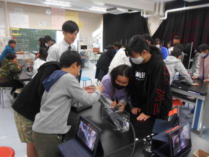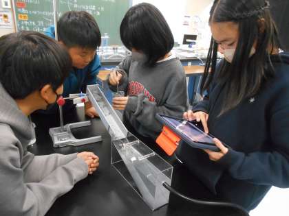 11月21日(火)6年生 理科 公開日 2023/11/21 更新日 2023/11/21 できごと 「土地のつくりと変化」今日は地層のでき方について、実験を通して学習しました。砂と泥を混ぜた土を水で流し込むことを何回か繰り返します。実験の様子はタブレットで録画しておきます。さあ、大切なのは、このあとです。実験方法と結果を関係づけて分かったことをしっかり考察できました。