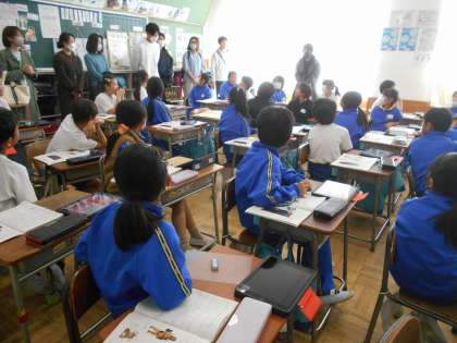 本日、2時間目と3時間目に授業公開を実施しました。多くのご家族の皆様に参観していただき、児童はいつも以上に頑張って学習していた感じがしました。ご家庭では見られないお子さんの教室での頑張りを今日はたくさん誉めてあげてください。なお、3年1組では社会科で先日見学した消防署のことを学んでいました。ちょうど参観したご家族のなかに消防士さんがいらっしゃって、色々質問に答えていただきました。(写真下)ありがとうございました!