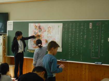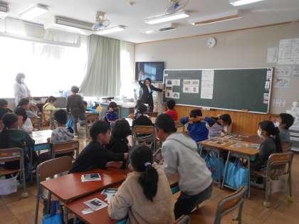 2年生の授業風景です。 1組:図工 2組:図工 3組:国語
