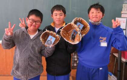 待ちに待ったグローブ(3つ)が、小野小の児童のもとに届きました!現在は6年生の学級から順番にまわして、児童が手に取って喜んでいます。全学級をまわりきったら、今度は実際にキャッチボールなどをしてみんなで仲良く使用します。それにしても、グローブを手にした児童の笑顔は最高です!