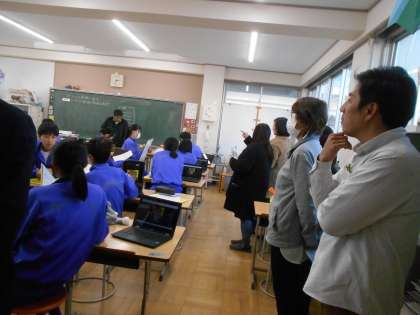 この日、小野中学校にて、小野連携型小中一貫校第5回学校運営協議会を実施しました。会議に先立ち、委員の皆様には、小野の一貫校の授業を参観していただきました。学校課題解決に向けた熟議では、はじめに、参観していただいた授業について、ねらいの達成に向けて生徒が考えたくなるような指導の工夫がされていることを誉めていただきました。また、学校評価について、PTAとおのハンモックの連携について等、協議していただきました。会長さんからは、教職員が児童生徒と向き合う時間の確保に向けて、県からの資料をもとにお話いただき、大変心強く感じました。