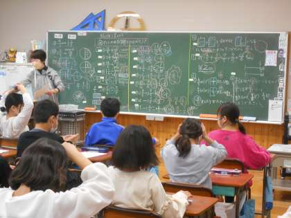 分数の計算です。今日は、たしかめ問題にチャレンジあるのみ!です。とにかく自分の力で問題を解きます。そしてとても印象的だったのは、友達の間違いから学んでいたことです。自分の間違いだけでなく、友達がどうして間違えたのかな?何を学習し直す必要があるのかな?と考えることで、皆の学習が深まります。小野小は、そういう学習ができる学級ばかりです。