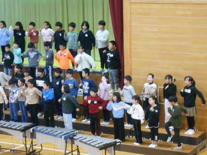 2月22日(木)音楽発表会3(中学年の部 3年生) 公開日 2024/02/22 更新日 2024/02/22 できごと ・ゆかいな木きん(歌と合奏) ・ミッキーマウスマーチ(リコーダー奏) ・勇気100%(合唱) 以上3曲を発表しました。 中学年の部からは、司会進行の児童がいたり、曲の説明をしたりすることができます。特に練習で頑張ったところを教えてくれるので、さらに楽しく聴かせてもらいました。