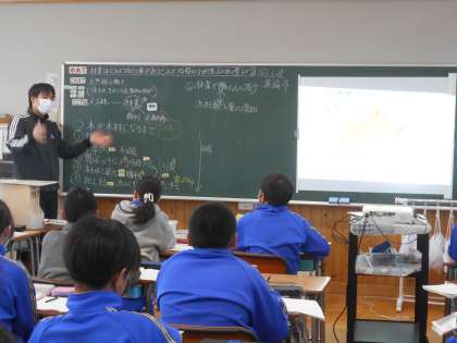 2月27日(火)5年生 社会科 公開日 2024/02/27 更新日 2024/02/27 できごと 「わたしたちの生活と森林」の学習では、林業に携わる人々の森林との関わりについて考えています。ちょうど教室では、児童が2つの資料から問いを見いだしていました。林業で働く人々が減っているなあ。輸入する木材量は増えているぞ。この2つの関係はどうなっているのかな?いろいろ調べて知りたくなっていた5年生でした。