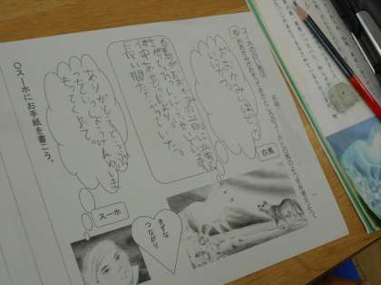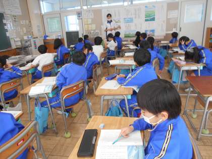 「スーホの白い馬」を読んで学習しています。今日は、あるばんのこと、おおかみがおそってきたときのスーホと白馬の様子について考えました。教室では、ここまでどんな場面だったかを教室の掲示をもとに、みんなで振り返っていました。でもそこでは、どの言葉にそれが表れているか?をしっかり確認できていました。もうすぐ3年生になる子たちの成長に感心しました。