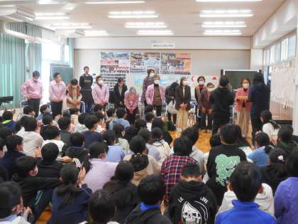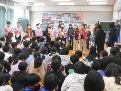 更生保護女性会小野支部様から19名の方々にもご出席いただきました。代表の方から6年生に優しくて熱いメッセージをいただきました。「この小野の地域で、大人はみんな、あなたたちのことを守っていますよ」というメッセージです。また、更生保護女性会の皆様の手作りのしおりもいただきました。