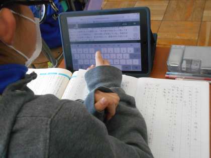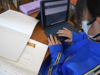 3月7日(木)5年生 国語 公開日 2024/03/07 更新日 2024/03/07 できごと 「大造じいさんとガン」のまとめです。現在では、この物語の魅力についてタブレット上にまとめています。教室では、児童がノートや教科書を見ながら真剣に考えていました。魅力をただ書くのではなく、表現の工夫や効果、その理由もについて学習してきたことをもとに考えていました。そして、タブレット上に提出される児童の考えを先生が丁寧にチェック、アドバイスして、最終提出に備えていました。