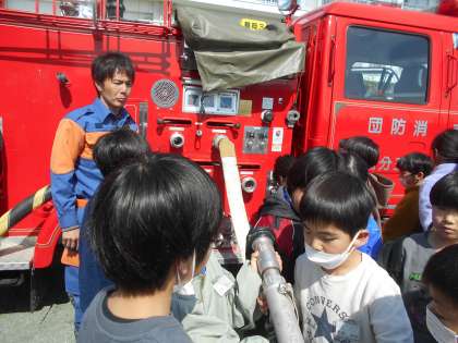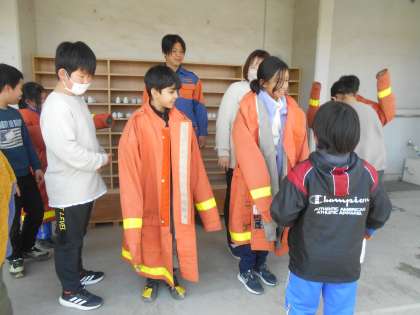 3月8日(金)3年生「小野のタカラビト」に話を聞く会6(消防団) 公開日 2024/03/08 更新日 2024/03/08 できごと 最後に消防団の方から、「大きくなったら消防団に入りたい人は?」と聞かれて、たくさんの手があがりました。小学生の今は入団できませんが、小野の地域を守るぞ!という気持ちはこれからもずっと持ち続けていく力強い3年生です。