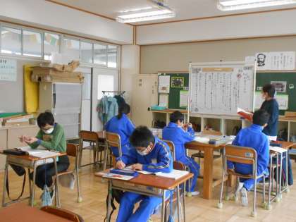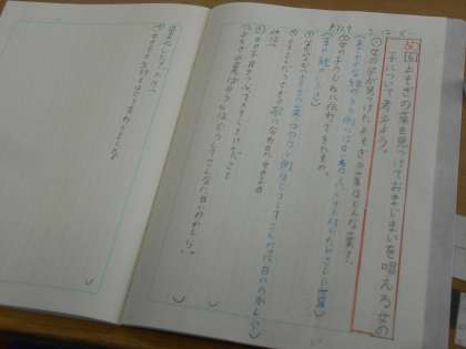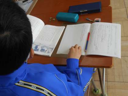 3月12日(火)ひまわり学級 公開日 2024/03/12 更新日 2024/03/12 できごと 2組では、4年生が「初雪のふる日」を読んで学習していました。今日は、よもぎの葉を見つけておまじないを唱えている女の子の気持ちについて考えていました。「ここでは」どの表現からそう考えたのか、をしっかりもっていなければなりません。みんなよく読んで考えていました。ノートを見ると、いつも丁寧にしっかり学習できていることが分かりますね。