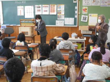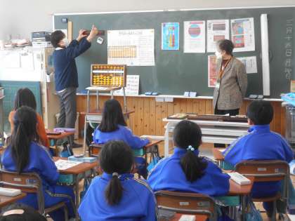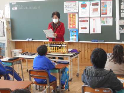3月18日(月)3年生 そろばん教室 公開日 2024/03/18 更新日 2024/03/18 できごと 本日、珠算連盟から5名の講師にお世話になり、標記教室を実施しました。そろばんの歴史など、3年生にとって興味深い話から始まり、そろばんの構造、数の表し方や加減の方法などを教えていただきました。「和算の大家 関孝和」として誇りある藤岡の子です。そろばんのこと、算数の学習をこれからもどんどん好きになってほしいです。