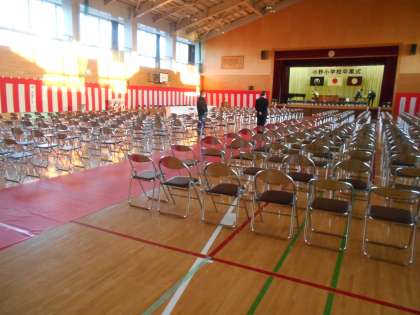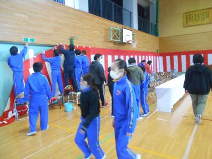 きれいに準備された体育館が、6年生の夢いっぱいあふれる晴れの巣立ちを待っています。明日はみんなで、感動いっぱい!素晴らしい卒業式にします!