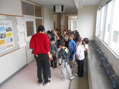 学校を紹介する際の場所の確認と紹介の練習をしていました。