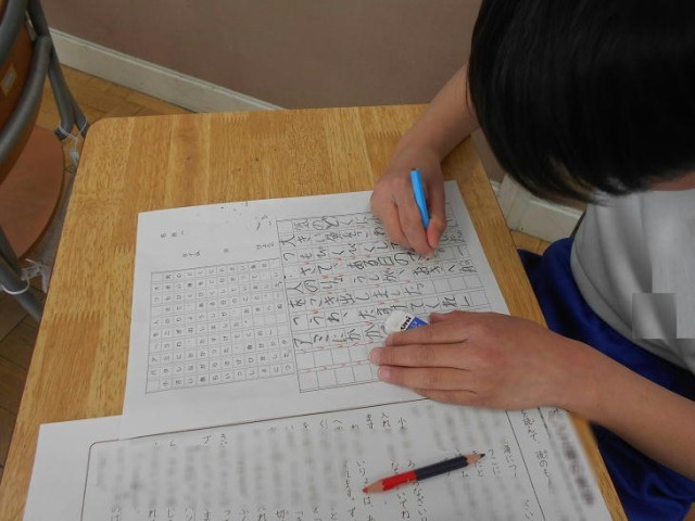 国語の時間、問題を解きながら学習内容を確かめたり、正確に表す試写に挑戦したりしていました。
