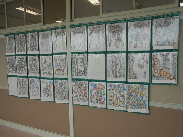 学級開きの時はシンプルな廊下の壁でしたが、今、素敵な作品で彩られています。