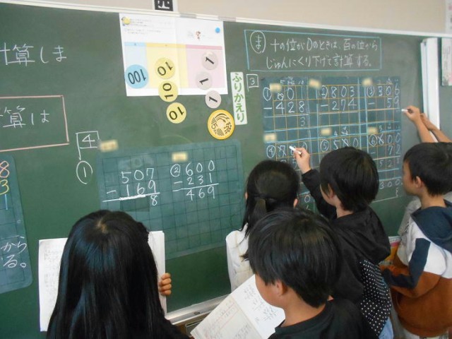 3位数の引き算について、「ふりかえり」で問題を解きながら学習内容を確認していました。