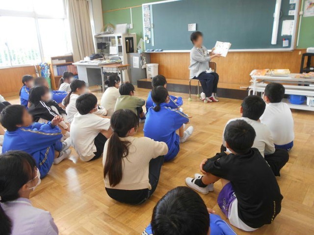 今朝は、4年生から6年生の教室で読書ボランティアさんによる「読み語り」がありました。