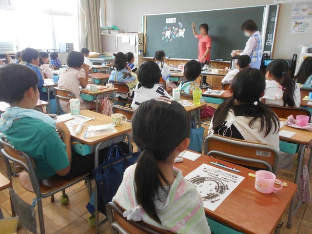 歯科衛生士さんと保健師さんによる出前講座が、3年生の教室でありました。
