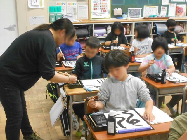 6月3日(火)初めての毛筆(3-1) 公開日 2025/06/03 更新日 2025/06/03 できごと 書写で、初めての毛筆にチャレンジしました。 筆でまっすぐや曲がった線を書くと どんな感じなのか試しました。 「毛筆は楽しい!」という声も聞かれ、幸先がよいスタートとなりました。