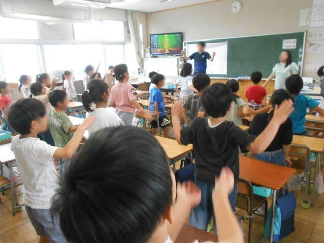 6月13日(金)授業の様子(2-2) 公開日 2025/06/13 更新日 2025/06/13 できごと 外国語活動の授業。 ALTの先生と一緒に、音楽に合わせてあいさつや物の名前を英語で言っていました。 楽しく活動していました。