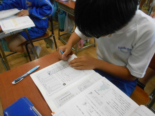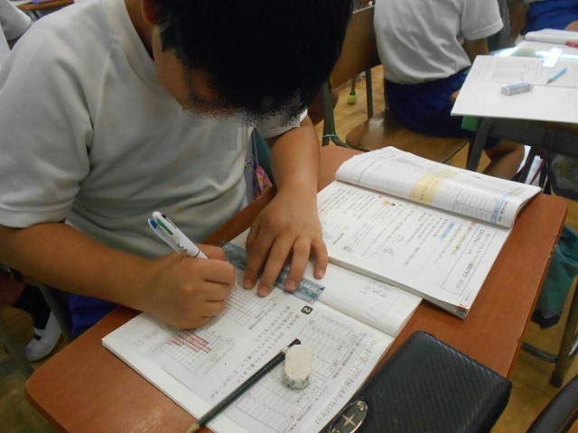 6月24日(火)授業の様子(6-1) 公開日 2025/06/24 更新日 2025/06/24 できごと 算数で表のデータをヒストグラムで表し、特徴を調べていました。 目盛りの数に気を付けて、慎重に表していました。