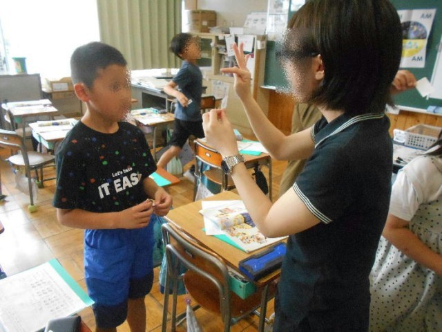 6月24日(火)授業の様子(4-2) 公開日 2025/06/24 更新日 2025/06/24 できごと 外国語活動の時間。 What time is it ? It's 10 PM. Thank you. 楽しく活動していました。