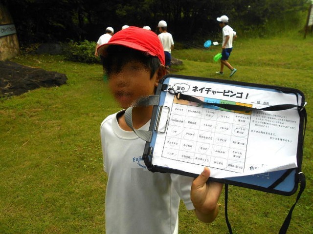 今回は、夏の動植物の様子を観察するということで、昆虫をキャッチアンドリリースしたり、「ネイチャービンゴ!」をしながら植物を観察したりしました。