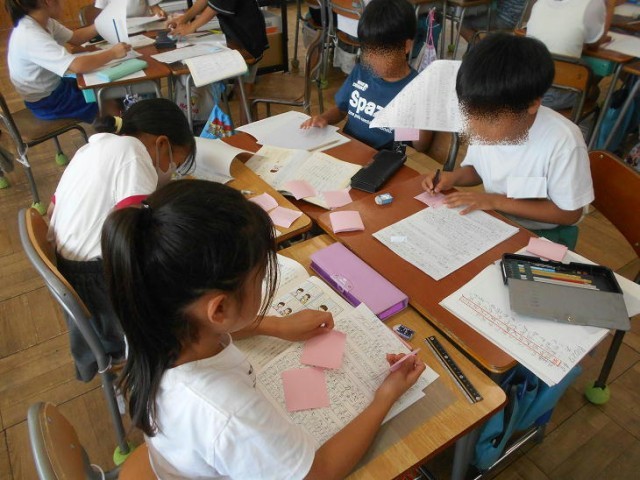 7月4日(金)授業の様子(3-1) 公開日 2025/07/04 更新日 2025/07/04 できごと 国語の時間に、自分が興味を持った仕事について、工夫されているところを調べ、それを表した報告する文章をみんなで読み合っていました。 書き方や説明の仕方でよかったところや、はじめてしったことやおもしろかったことを付箋に表して伝え合うことで、自他のよい点を確認することができました。
