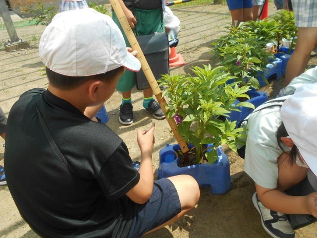 7月4日(金)授業の様子(3-2) 公開日 2025/07/04 更新日 2025/07/04 できごと 理科で、ホウセンカの観察していました。 定規を使って背丈を測ったり、花の様子を写真に収めたりしながら、成長の様子を細かく記録していました。