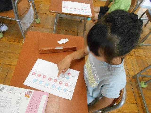 3組も算数。花の数を調べるのに、どうしたらわかりやすくなるか考えていました。