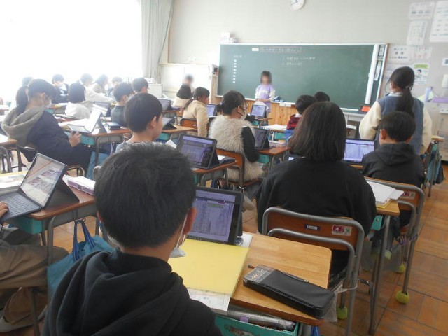 社会で学んだ「養蚕の発展に尽くした人」についてまとめたことを発表していました。...