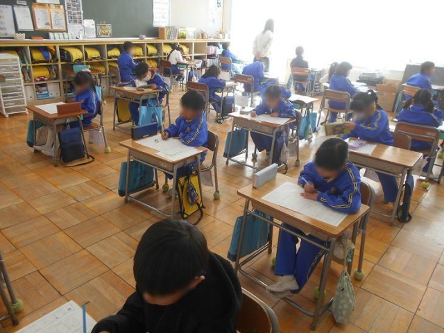 1,2校時に4年生が書き初めをしました。 書に集中する子供たちを見ていると、「...