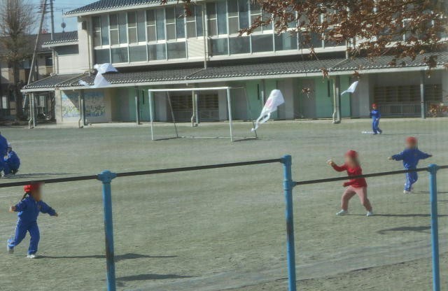 1年生が、生活課の時間に自分で作った たこを揚げていました。 高く上がった人、...
