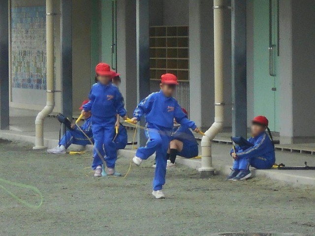 体育で縄跳びの学習をしていました。 片足で跳んだり駆け足で跳んだりと、いろいろ...