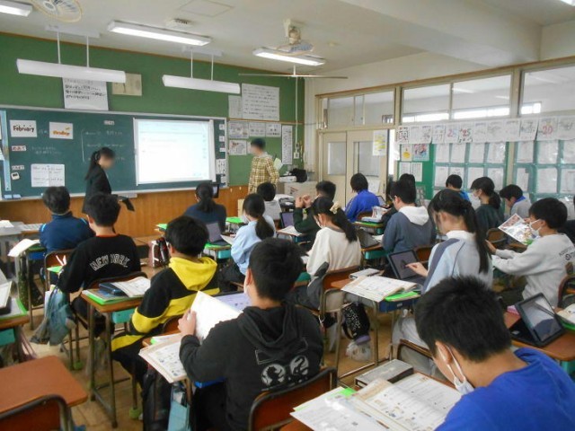 外国語活動で、「日課」を英語で表現していました。 ALTの後に続いて、大きな声...