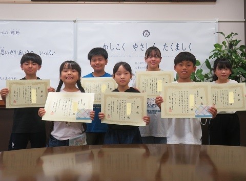7/15 表彰 公開日 2025/07/15 更新日 2025/07/15 できごと 7月15日(火)、「よい歯の図画コンクール」「よい歯のポスターコンクール」「よい歯の啓発標語コンクール」及び「藤岡・多野よい歯の子コンクール」で入賞した子どもたちの表彰を行いました。 また、藤岡市柔道大会で活躍した子どもたちの表彰も行いました。みなさん、おめでとうございます。