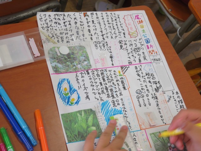 7/16 総合的な学習の時間 公開日 2025/07/16 更新日 2025/07/16 できごと 4年生は、総合的な学習の時間で、尾瀬について新聞にまとめていました。 自分たちで撮った写真を使い、自分のテーマについて調べたことを工夫して仕上げていました。